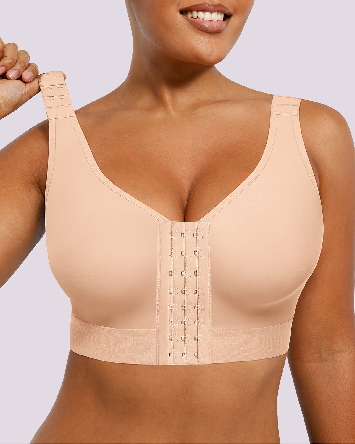 • 3-level adjustable front hook-and-eye closure for easy wear.